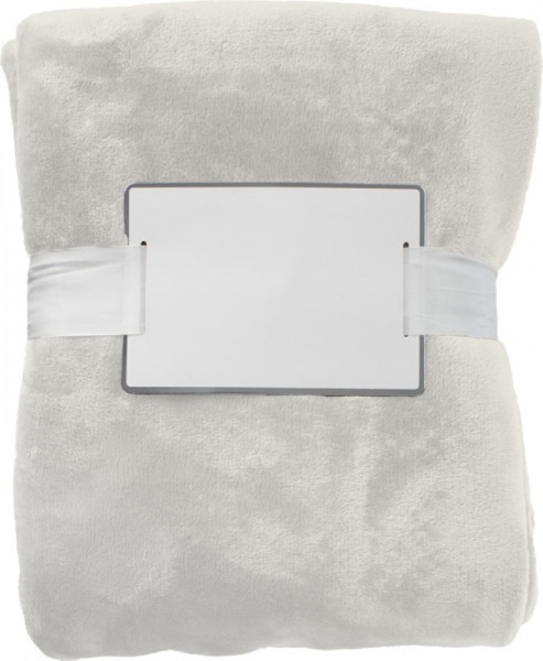 Fleecová deka (280 gr/m?) s bielou stuhou a lepenkou. Veľkosť: 120 x 150 cm.