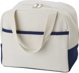 Bavlnená (280 gr/m?) chladiaca taška s PEVA podšívkou. Jedna veľká priehradka na zips, jedno malé predné vrecko.