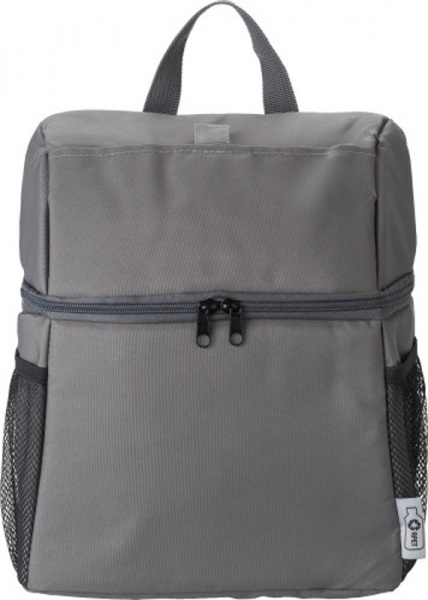 Chladiaci batoh z recyklovaného polyesteru (300D/PU RPET) s PEVA (13C) podšívkou. Jedno predné vrecko so zapínaním na suchý zips, dve bočné sieťované vrecká. Nastaviteľné ramenné popruhy.