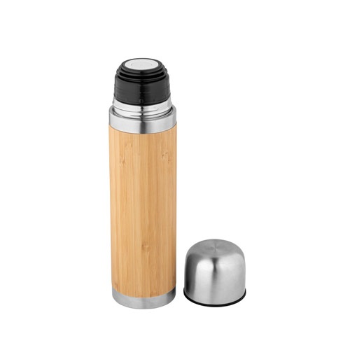 Vákuovo izolovaná dvojplášťová termoska z bambusu a nehrdzavejúcej ocele. Fľaša má kapacitu až 450 ml a udrží nápoje horúce 12 hodín a studené 24 hodín. Dodávané v darčekovej krabičke z kraftového papiera