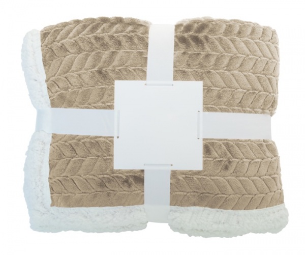 Dvojvrstvová RPET deka so žakárovým vzorom z 240 g/m2 flanelového fleecu RPET a obojstrannou podšívkou 210 g/m2 RPET sherpa fleecu. Zabalené do stuhy a potlačiteľné papierové karty.