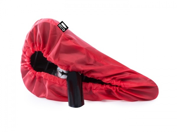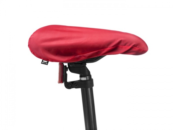 Poťah na sedlo bicykla s výrazným štítkom RPET polyester.