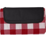 Skladacia pikniková deka z flísu 150gsm RPET s vodeodolnou spodnou vrstvou PEVA. Predná kapsa na zips a krátky popruh na prenášanie.