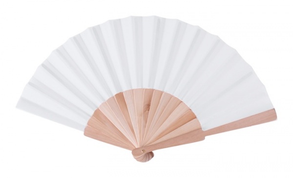 Ručný vejár z polybavlny s drevenými rebrami.