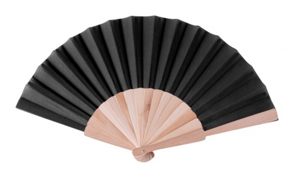 Ručný vejár z polybavlny s drevenými rebrami.