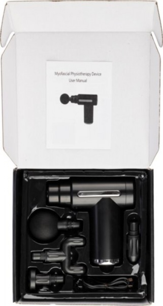 ABS masážna pištoľ s kefovým motorom (rýchlosť 1.800 - 3.200 ot./min.) a 1.200 mAh akumulátorom. 5V vstup a 6 úrovní intenzity na masáž svalov. Jednotlivo balené po kuse v darčekovom balení, vrátane 4 masážnych hláv.