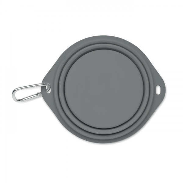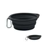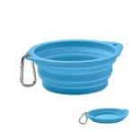 Skladacia prenosná silikónová miska pre domáce zvieratá na pitie alebo jedlo s karabínou. Kapacita: 350ml.