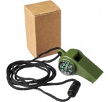 Plastová píšťalka (90 dB) s kompasom a teplomerom na boku. Teplomer zobrazuje v stupňoch Celzia. Obsahuje 100 cm polyesterovú šnúrku na krk s ABS bezpečnostnou prackou. Jednotlivo balené v hnedej kartónovej krabici.