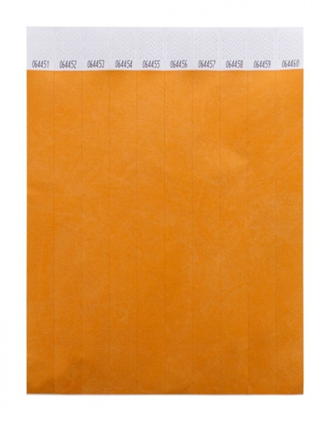 Jeden hárok 19 mm širokých tyvekových náramkov (10 ks) s lepiacim bezpečnostným uzáverom a jedinečným číslovaním.