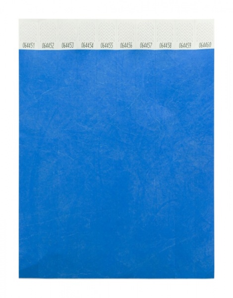 Jeden hárok 19 mm širokých tyvekových náramkov (10 ks) s lepiacim bezpečnostným uzáverom a jedinečným číslovaním.