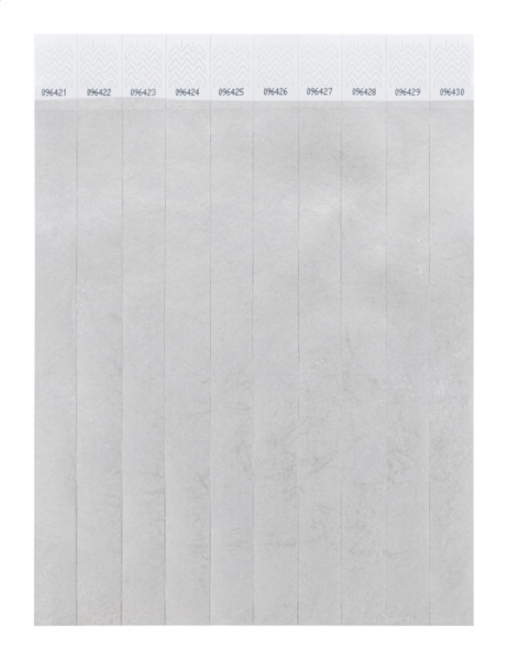 Jeden hárok 19 mm širokých tyvekových náramkov (10 ks) s lepiacim bezpečnostným uzáverom a jedinečným číslovaním.
