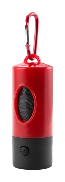 Plastový zásobník na psie odpadky s 1LED svetlom, 15timi vreckami a hliníkovou karabínkou, vr. gombíkových batérií.