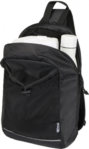 Reflexné prvky, hlavná priehradka na zips s vnútorným vreckom, sieťované predné vrecko s elastickou šnúrkou pre uchytenie fľaše a veľké zadné vrecko pre rýchly prístup. Nastaviteľný popruh a priedušný sieťovaný chrbát poskytujú pohodlné nosenie.