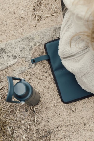 4-panelový dizajn pre jednoduché zloženie a prenášanie, vodeodolná spodná vrstva z PEVA. Vybavená praktickým popruhom so zapínaním, ktorý umožňuje pripevniť podložku na tašku. Veľkosť 40x30 cm. Obsahuje 24 % RCS-certifikovaného RPET.