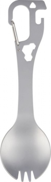 Nerezový otvárač na fľaše a konzervy s integrovanou vidličkou a lyžicou, plochým skrutkovačom a tromi imbusovými kľúčmi v tele. Súčasťou balenia je karabína. Balené po kusoch v papierovom vrecku.