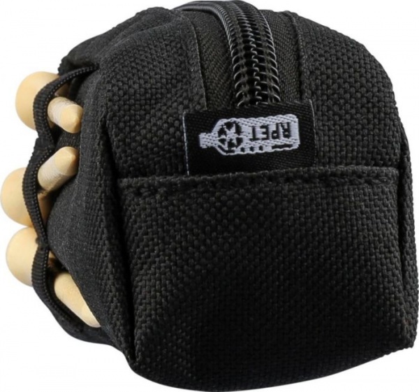 Golfová sada z rPET v puzdre na zips s PP karabínou, obsahujúca 3 tréningové golfové loptičky a 3 bukové golfové odpaliská. Ideálne na reklamné použitie a tréning odpalov. Vrátane štítku z rPET.