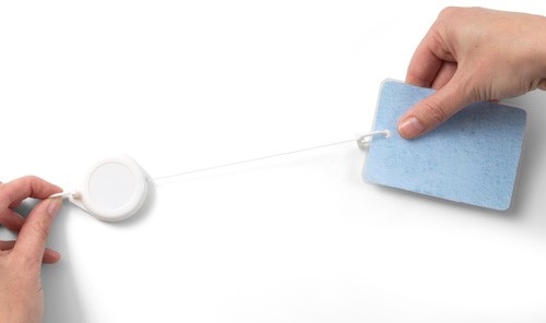 Plastový držiak na menovku so zásuvným káblikom s dĺžkou cca 80 cm.