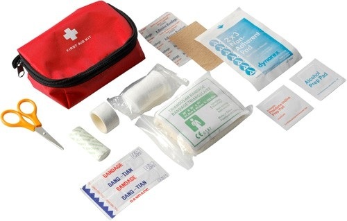 Lekárnička prvej pomoci v nylonovom vrecku so zapínaním na zips.