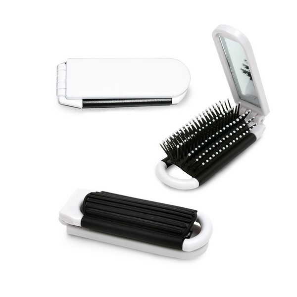 Skladacia kefa s kozmetickým zrkadlom.