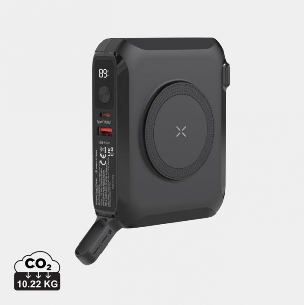 15W magnetická nabíjačka pre najnovšie telefóny. Vďaka kapacite 15 000 mAh a výstupu PD 65 W môžete napájať aj notebooky. Port pre rýchle nabíjanie typu C in/out a výstupný port USB A. 4 typy AC zástrčiek. Je možné nabíjať zároveň až 4 zariadenia.