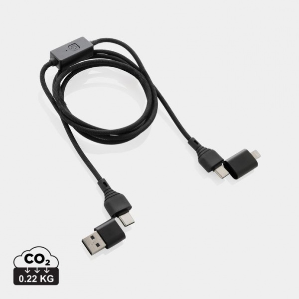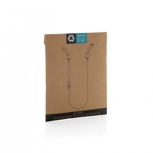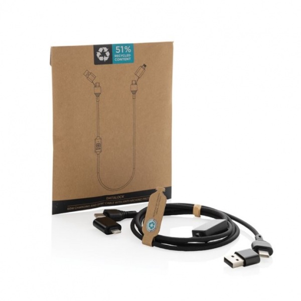 Nabíjací a dátový kábel, vhodný aj na nabíjanie notebooku s integrovaným tlačidlom na vypnutie prenosu. Jednoducho stlačte tlačidlo pre aktiváciu ochranného režimu. Dĺžka kábla 120cm, podporuje Car play a Android auto. Podiel recyklátu: 52%.