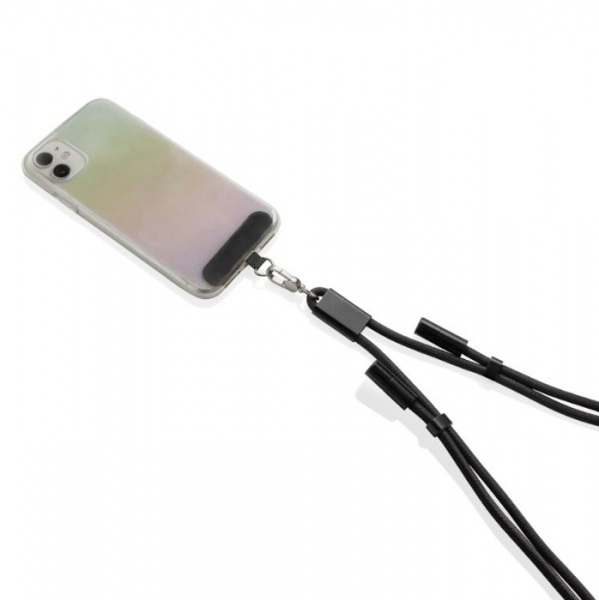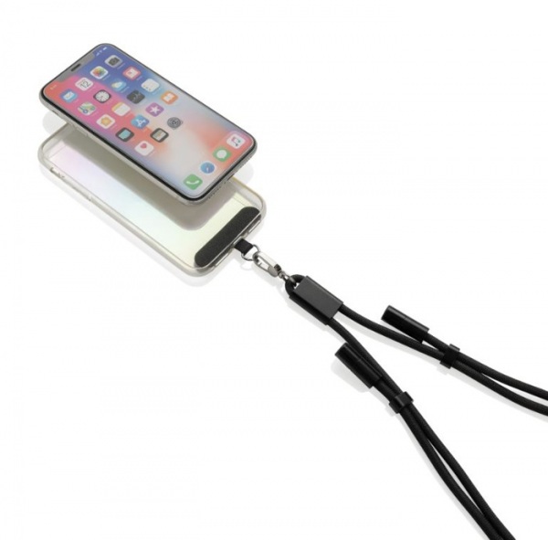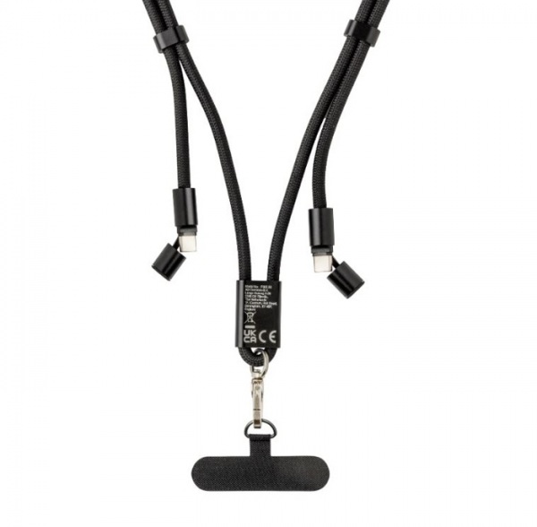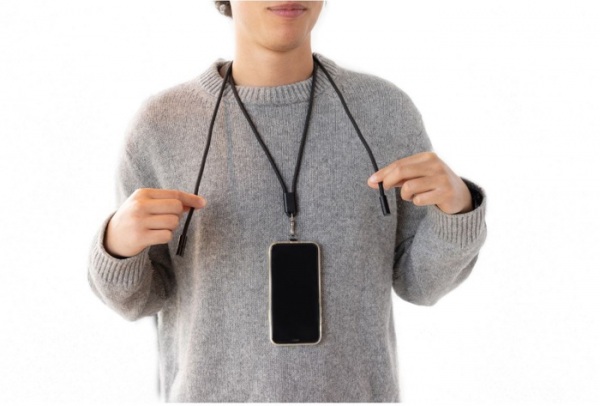 Telefónny popruh 160 cm s pevnou šnúrkou, krúžkom a háčikom chráni telefón pred pádom. Slúži aj ako USB-C nabíjací kábel s výkonom až 60?W. Zosilnené konektory a odolné materiály. Podporuje prenos dát. Bez PVC, balené v FSC® certifikovanom obale.