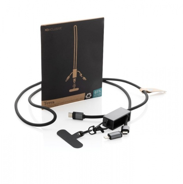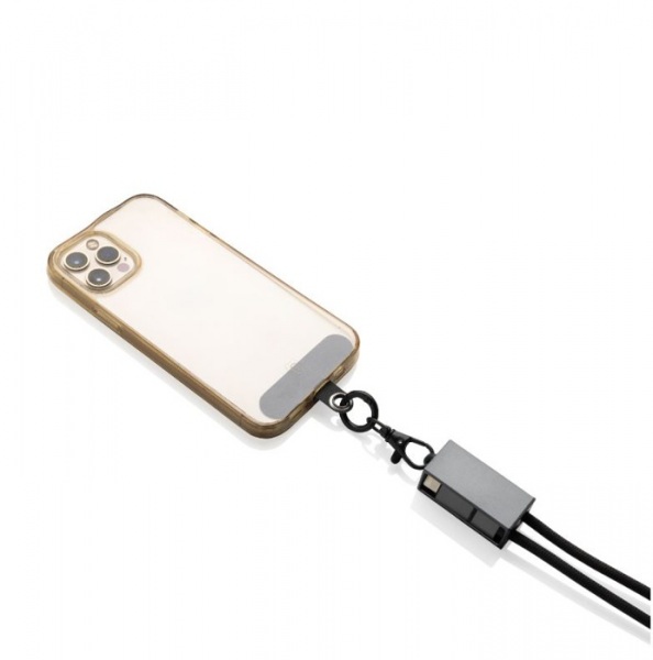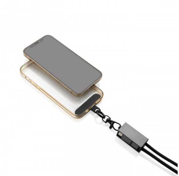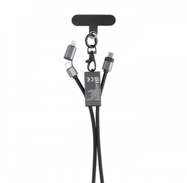 Kombinácia šnúrky na krk s funkčnosťou vysoko výkonného nabíjacieho a dátového kábla. Podporuje zariadenia USB-C aj iOS. Vstup typu C s dvoma výstupmi typu C a iOS. Napájanie 60W pre nabíjanie 20V/3A. Kompatibilita s Android Auto.
