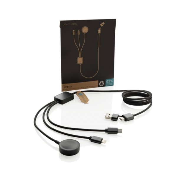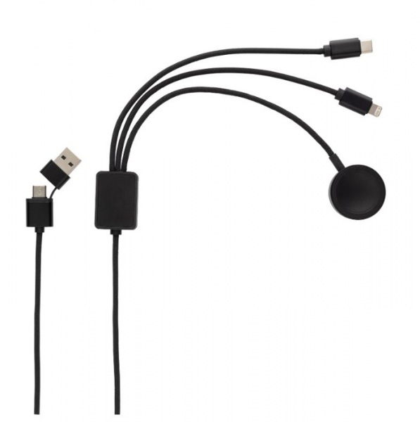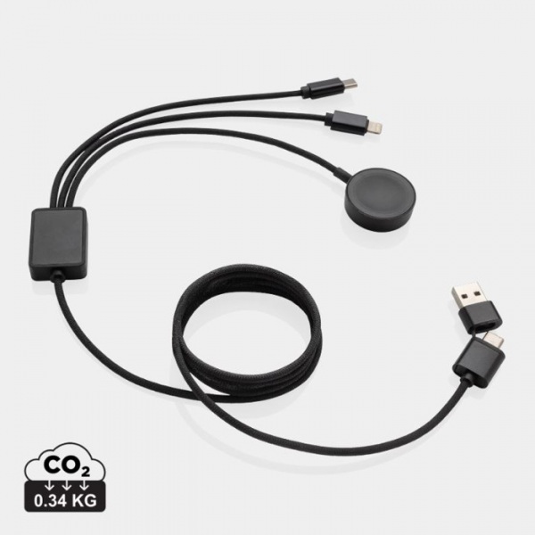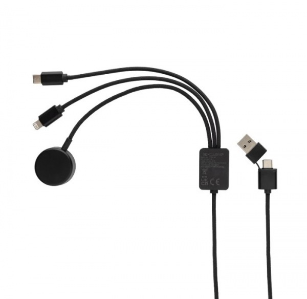 S duálnym vstupným konektorom: USB A a typ C. S dvojitým výstupným konektorom: Ponúka celkom 6 možností nabíjania. 2,5 W nabíjačka hodiniek (kompatibilná s Apple Watch a Samsung). Súčasťou je kábel s dĺžkou 120 cm. Podporuje nabíjanie do 5V/2A. PVC free.