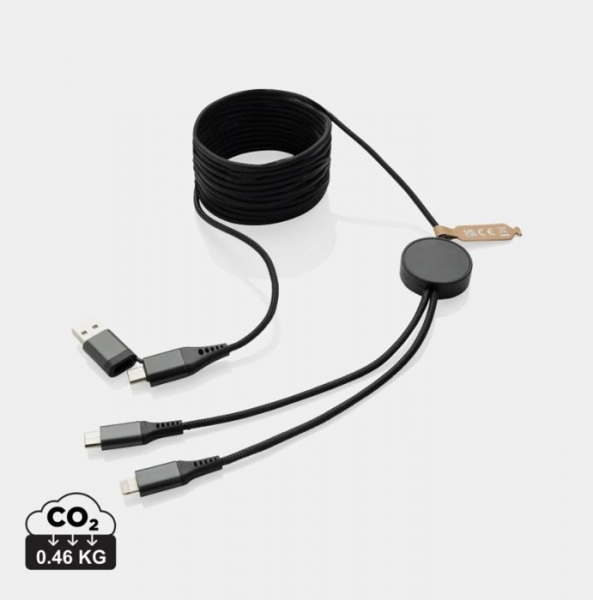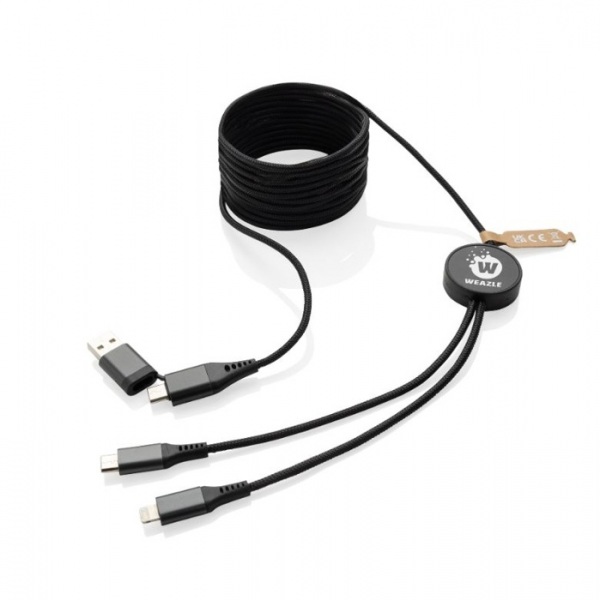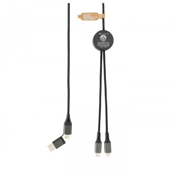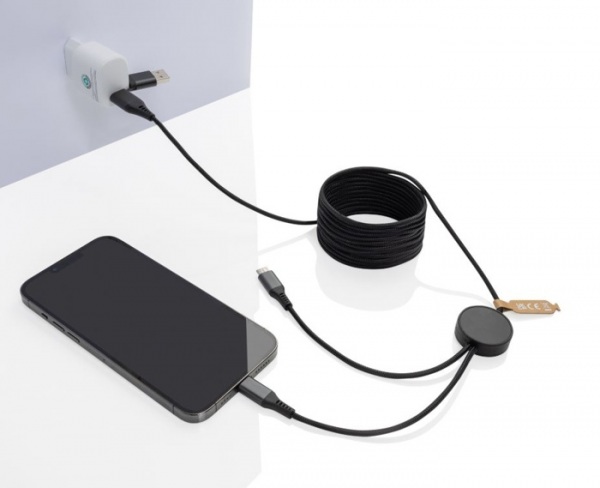 Extra dlhý 3-metrový nabíjací kábel s duálnym vstupným konektorom: USB A a typ C. S dvojitým výstupným konektorom: Ponúka celkom 4 možnosti nabíjania. Súčasťou je recyklovaný PET kábel 300 cm. Podporuje nabíjanie do 5 V/2 A. Neobsahuje PVC.