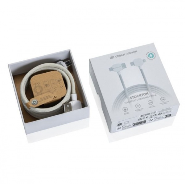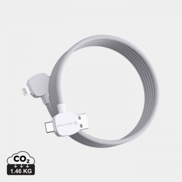 Nabíjací kábel 6 v 1, nabíjanie rýchlosťou až 45W. Podiel recyklátu: 52%. 5 kontektorov: USB C/USB A vstup, USB C/micro USB/iOS výstup. Bez PVC. Max výkon USB C do Lightning: 18W, max výkon USB C do USB C: 45W. Dĺžka: 120 cm. Na nabíjanie aj prenos dát.