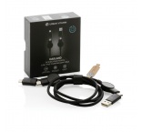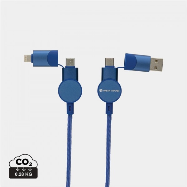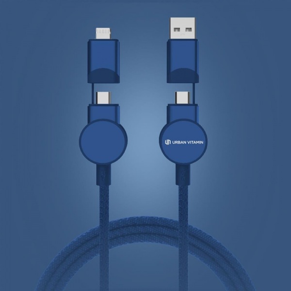 Nabíjací kábel 6 v 1, nabíjanie rýchlosťou až 45W. Podiel recyklátu: 52%. 5 kontektorov: USB C/USB A vstup, USB C/micro USB/iOS výstup. Bez PVC. Max výkon USB C do Lightning: 18W, max výkon USB C do USB C: 45W. Dĺžka: 120 cm. Na nabíjanie aj prenos dát.