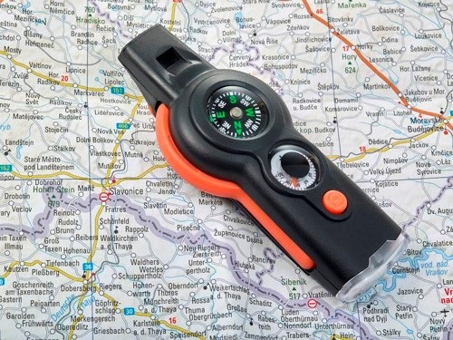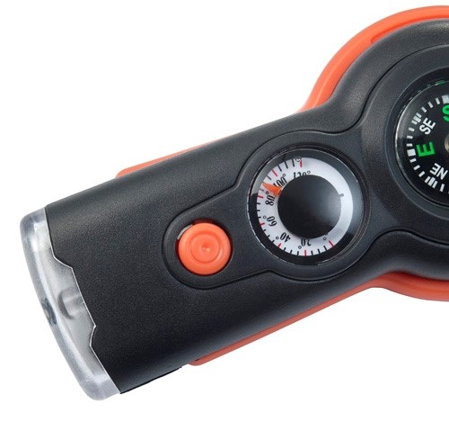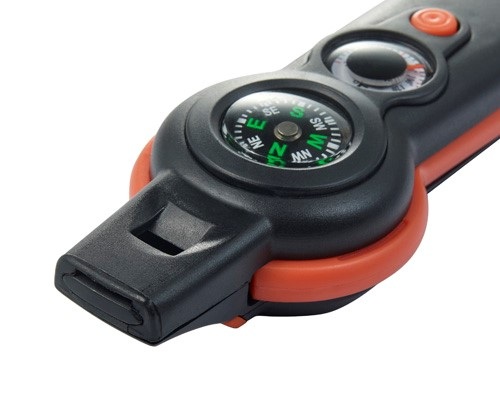 Obsahuje píšťalku, kompas, teplomer (° F), svetlo, zrkadlo, zväčšovacie sklo a šnúru s bezpečnostným uzáverom.