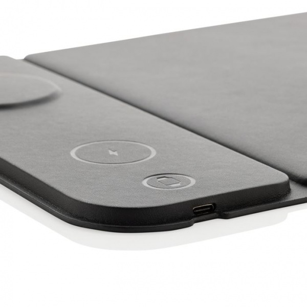 Magnetická 15W bezdrôtová nabíjačka, 5W nabíjačka a 2,5W nabíjačka pre Apple hodinky. 120 cm kábel. Balené v FSC® krabičke. Bez PVC. Vstup: 9V/3A. Výstup: Telefón: 9V/1,1A; 9V/1,67 A/(15W), Slúchadlá: 5V/1A (5W), Hodinky: 5V/0,5A.