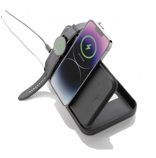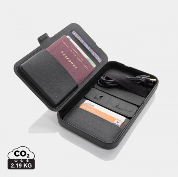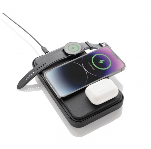Cestovné puzdro má priestor pre cestovný pas niekoľko kariet. Magnetická 15W bezdrôtová nabíjačka, 5W bezdrôtová nabíjačka pre puzdro na slúchadlá alebo iné malé zariadenia a 2,5W bezdrôtová nabíjačkoa pre hodinky Apple. Súčasťou balenia je 120 cm kábel.