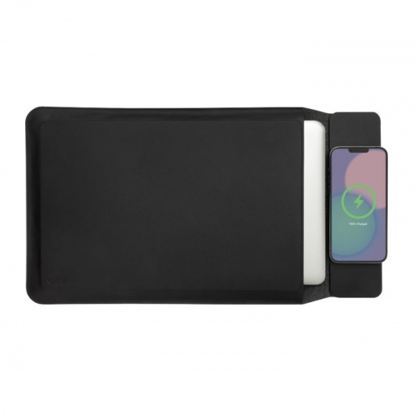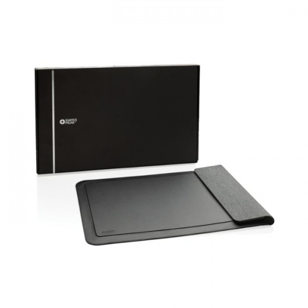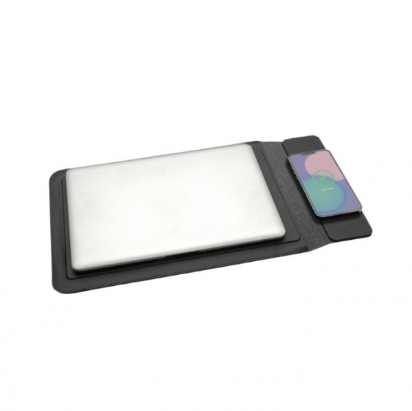Obal na notebook Swiss Peak RCS z recyklovaného polyesteru s 15W magnetickým nabíjaním pre notebooky 14-15.6". Magnetický uzáver, bezdrôtové 15W magnetické nabíjanie. 120cm čierny RCS 9V/2A. Podiel recklátu: 6%
