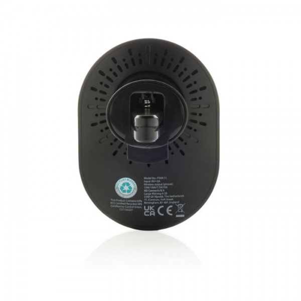 Ultra rýchle 15W bezdrôtové nabíjanie s pevným uchytením vďaka 15 silným magnetom . Integrovaná LED dióda zobrazuje stav nabíjania, vstavaná chladiaca funkcia. PVC free. 120 cm USB-C na USB-C kábel z recyklovaného TPE (RCS). Vstup: USB-C 9V/2A.