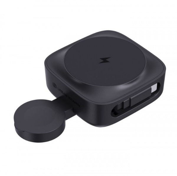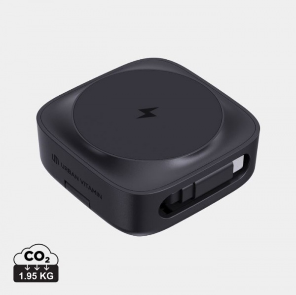 15W magnetická bezdrôtová nabíjačka so 65 cm navíjacím USB-C káblom. Silné magnetické pripojenie, viacero možností výstupu (10 W, 7,5 W, 5 W) v závislosti od zariadenia. Bezdrôtový výstup 2,5 W pre iWatch. Výsuvný RTPE kábel (vstup 9V/3A USB-C). PVC free.