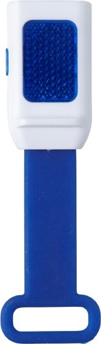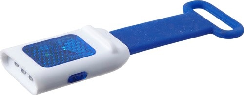 Svetlo na bicykel z plastu s 3 LED diódami vpredu a 1 LED diódou na vrchu. So silikónovým popruhom na upevnenie. Batérie v cene.