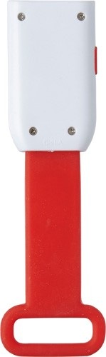 Svetlo na bicykel z plastu s 3 LED diódami vpredu a 1 LED diódou na vrchu. So silikónovým popruhom na upevnenie. Batérie v cene.