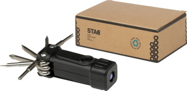 Sada skrutkovačov 8 v 1 so svietidlom vyrobená z 20% recyklovaného plastu s certifikáciou RCS. Obsahuje 2 LED svetlá, 3 hlavy krížového skrutkovača a 3 hlavy plochého skrutkovača. Dodáva sa s 3 batériami LR44. Zabalené v darčekovej krabičke STAC.