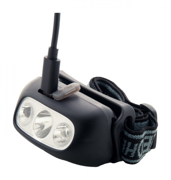 Plastová čelovka so vstavanou USB dobíjacou batériou (400 mAh) a nastaviteľným popruhom. S vysoko výkonným COB svetlom a dvoma snímačmi pohybu. S vysokým, nízkym a svetelným režimom citlivým na pohyb. Vrátane USB nabíjacieho kábla.
