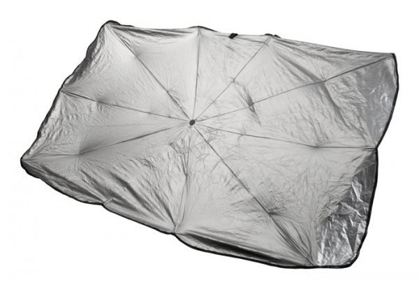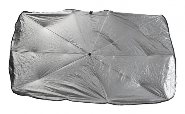 Skladacia clona do auta na čelné sklo s kovovým rámom. V polyesterovom púzdre.
