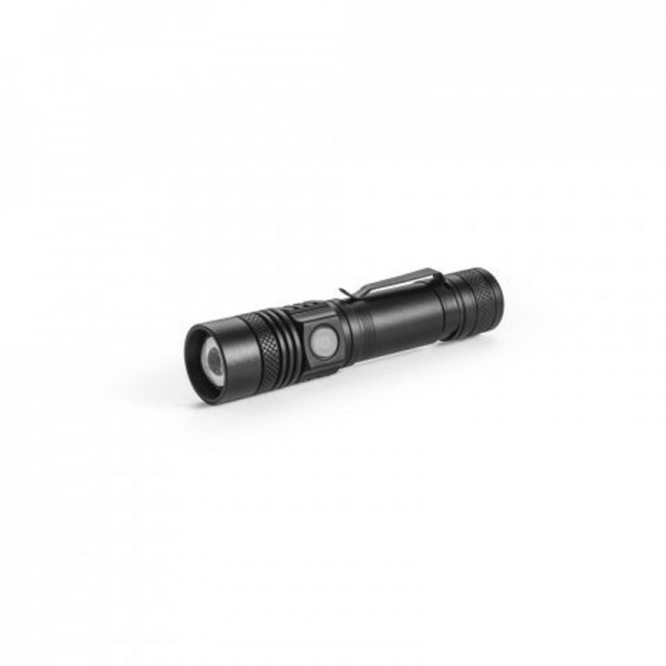 5W nabíjateľná hliníková baterka. 300 lumenová LED, 5 režimov svietenia, teleskopický zoom a spínač na zapnutie a vypnutie baterky. Batéria má kapacitu 2000 mAh a je možné ju nabíjať pomocou USB-C káble. Dodávané v krabičke z kraftového papiera.