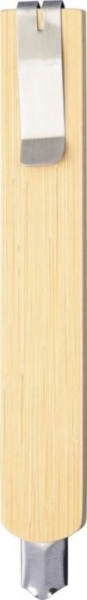 Kovový orezávač s bambusovým telom. Obsahuje kovovú sponu na zadnej strane na pripevnenie noža, keď sa nepoužíva. Čepele sú vyrobené z uhlíkovej ocele. Jednotlivo balené.