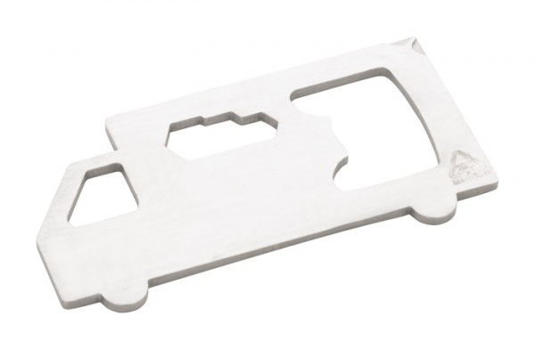 Multifunkčné náradie z recyklovanej nerezovej ocele v tvare nákladiaka s otváračom na fľaše, skrutkovačom Philips a 3 plochými kľúčmi.