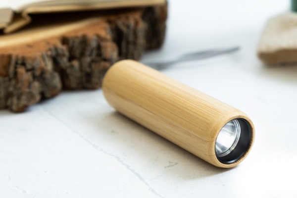 Bambusová baterka so vstavanou USB dobíjacou batériou (320 mAh), 1 LED svetlom a pútkom na prenášanie. S 3 režimy svietenia. Vrátane USB nabíjacieho kábla.