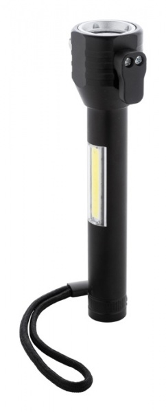 Hliníková baterka 3v1 s núdzovým kladivkom a rezačkou bezpečnostných pásov. So vstavanou USB dobíjacou batériou (500 mAh), magnetom a popruhom. S vysoko výkonným COB svetlom pri písme a COB svetlometom na boku. Vrátane USB nabíjacieho kábla.