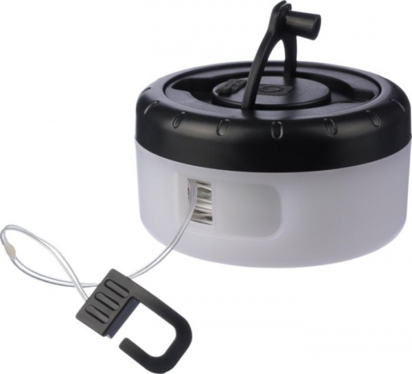 ABS svetlo s nabíjateľnou kempingovou lampou s 2 svetelnými funkciami. Súčasťou balenia je 8-metrový svetelný reťazec, ktorý sa dá navíjať pomocou cievky. Napájané 1 000 mAh batériou s nabíjaním cez kábel typu C. Jednotlivo balené v hnedej krabici.