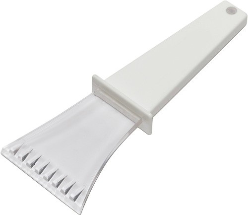 Škrabka na ľad z plastu s pevnou farebnou rukoväťou.
