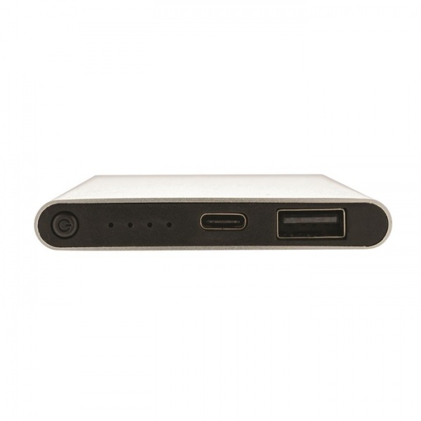 Plochá powerbanka 4 000 mAh. RCS je globálny štandard, ktorý umožňuje overiť použitie rec. materiálu. Podiel recyklátu: 36%. Svetelné indikátory. USB vstup C:5V/2A. USB C výstup:5V/2A, USB A výstup:5V/2A. Vrátane kábla z rec. TPE. PVC free. FSC® krabička.